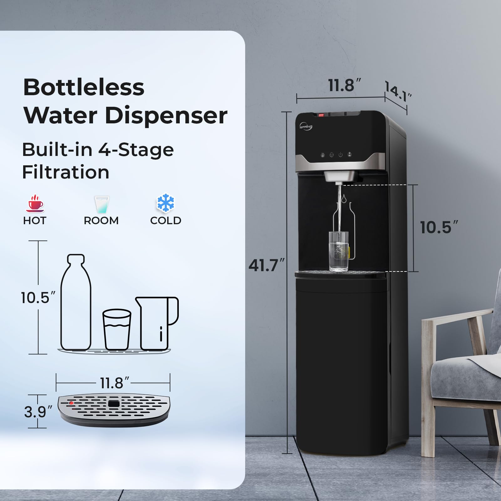 - 3-TEMPERATURE SETTINGS: Cold (39°F to 46°F), hot (up to 201˚F), room temperature options offer full water temperature control for your convenience.